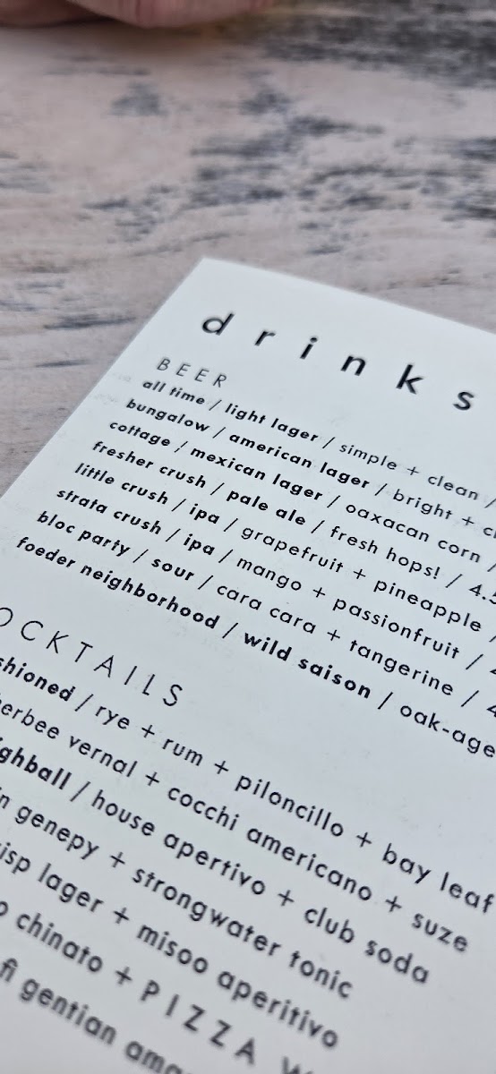 The small plates also deserve a mention; from vibrant salads to flavorful seasonal sides, they complement the pizzas beautifully. One guest waxed poetic about the Big Salad, which pairs perfectly with any main for a robust meal. And when it comes time for dessert, the soft serve ice cream is a sweet finish that leaves a lasting impression.